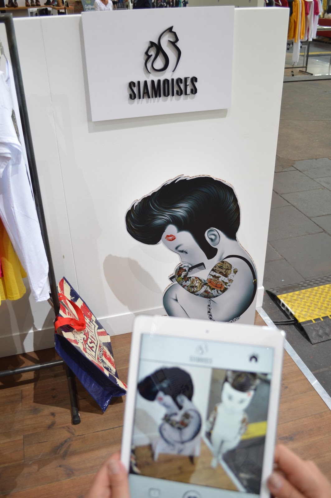 First Stop war das Newcomer Label aus Italien Siamoises, welches durch ihre Grafischen und sehr verspielten Prints absolut überzeugt und sich von der Masse abhebt. Des weiteren hat Siamoises eine App in der man quasi in eine andere Welt abtauchen kann. Besitzt man angenommen ein T-Shirt mit einem Hippie oder Indianer Print kann man mit Hilfe eines Smartphones und dessen Kamera absolut verrückte Dinge machen, wie zum Beispiel sich selbst eine Perücke mit Federschmuck aufsetzen oder die kleinen Figuren tanzen oder singen lassen. Was ich wiederum super an der Kollektion finde, es gibt sie auch für Kinder. Natürlich bieten viele tolle Labels eine Kinder Kollektion an, doch diese überzeugt alleine schon durch die App. Da ich jetzt die nächsten drei Wochen in Italien verbringen werde, schaue ich evtl. mal in einen Store am Gardasee welcher die Firma führt.