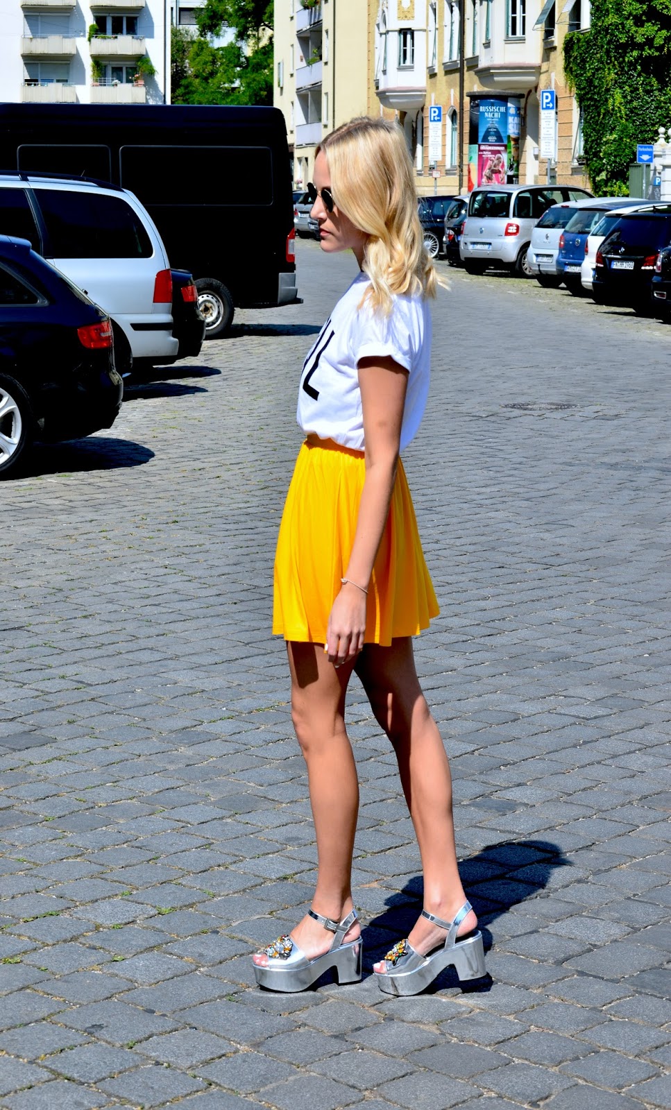 Dieser Rock ist glaube ich das einzige gelbe Kleidungsstück in meinem Kleiderschrank, was schade ist wenn ich mir die Fotos länger ansehe. Aber ich greife dann doch meistens immer wieder zu schwarz oder weiss…
