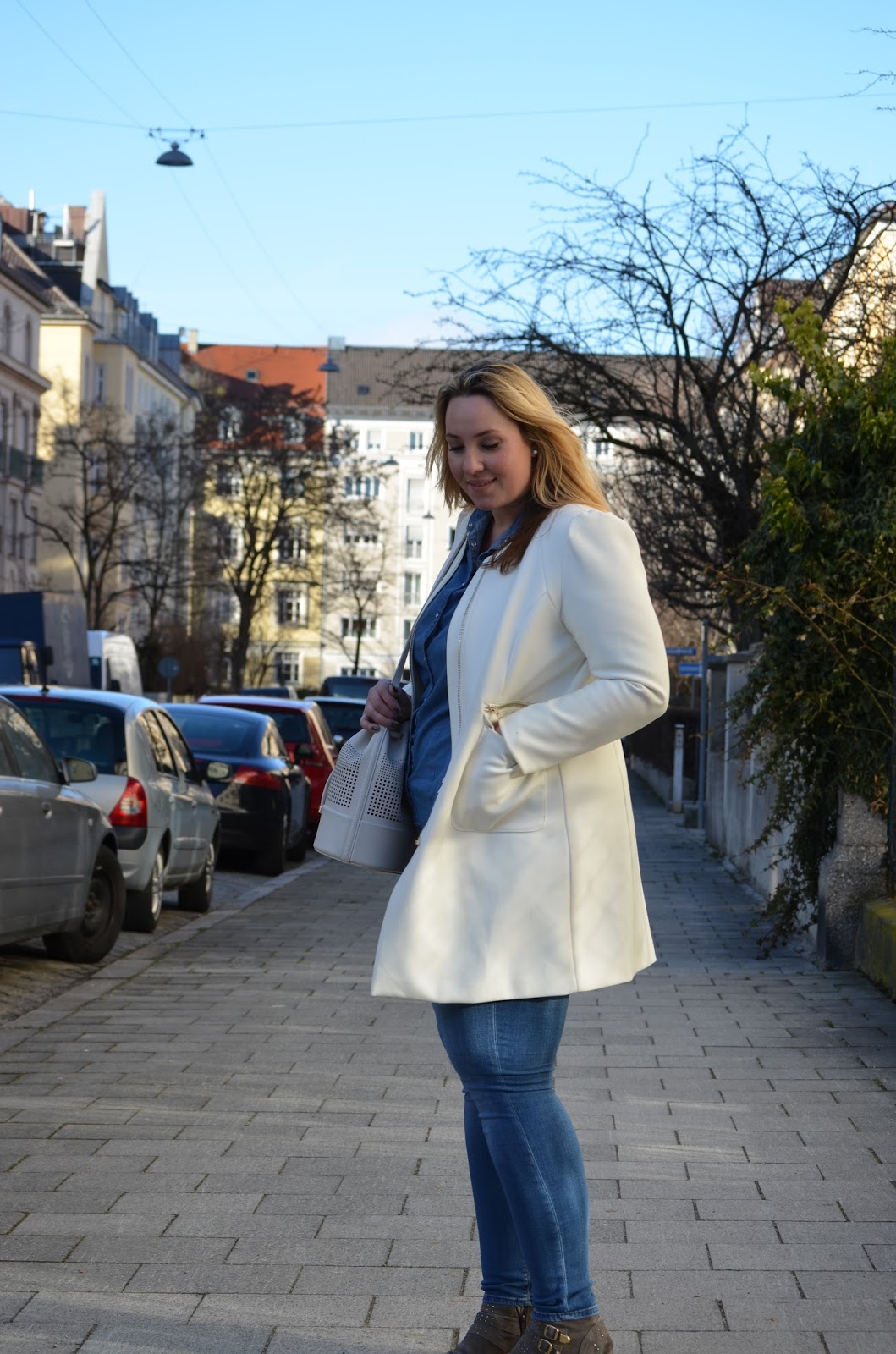 Heute gibt es mal wieder einen neuen Outfit Post für Euch, und zwar „Denim all Over“. Ich liebe diese Kombination wirklich sehr, da sie einfach so gut in meinen Alltag passt und dazu noch bequem ist. Die Schuhe haben keinen zu hohen Absatz, und sind somit bestens für mich geeignet. Dazu meinen chicen weißen Mantel von H&M und meine neue Bucket Bag von Zara und schon ist der Look perfekt. Da mich immer soviel liebe Mädels fragen, wo ich meine Hosen kaufe, und welches Modell ich trage, hier die Antwort: Es ist die Ridley von Asos, sie gibt es in der Normalen sowie in der Curve Abteilung und ich besitze sie in diversen Ausführungen, da sie einfach so unglaublich bequem ist. Durch ihren Strech-Anteil fühlt man sich auch nicht die ganze Zeit so unglaublich eingeengt.