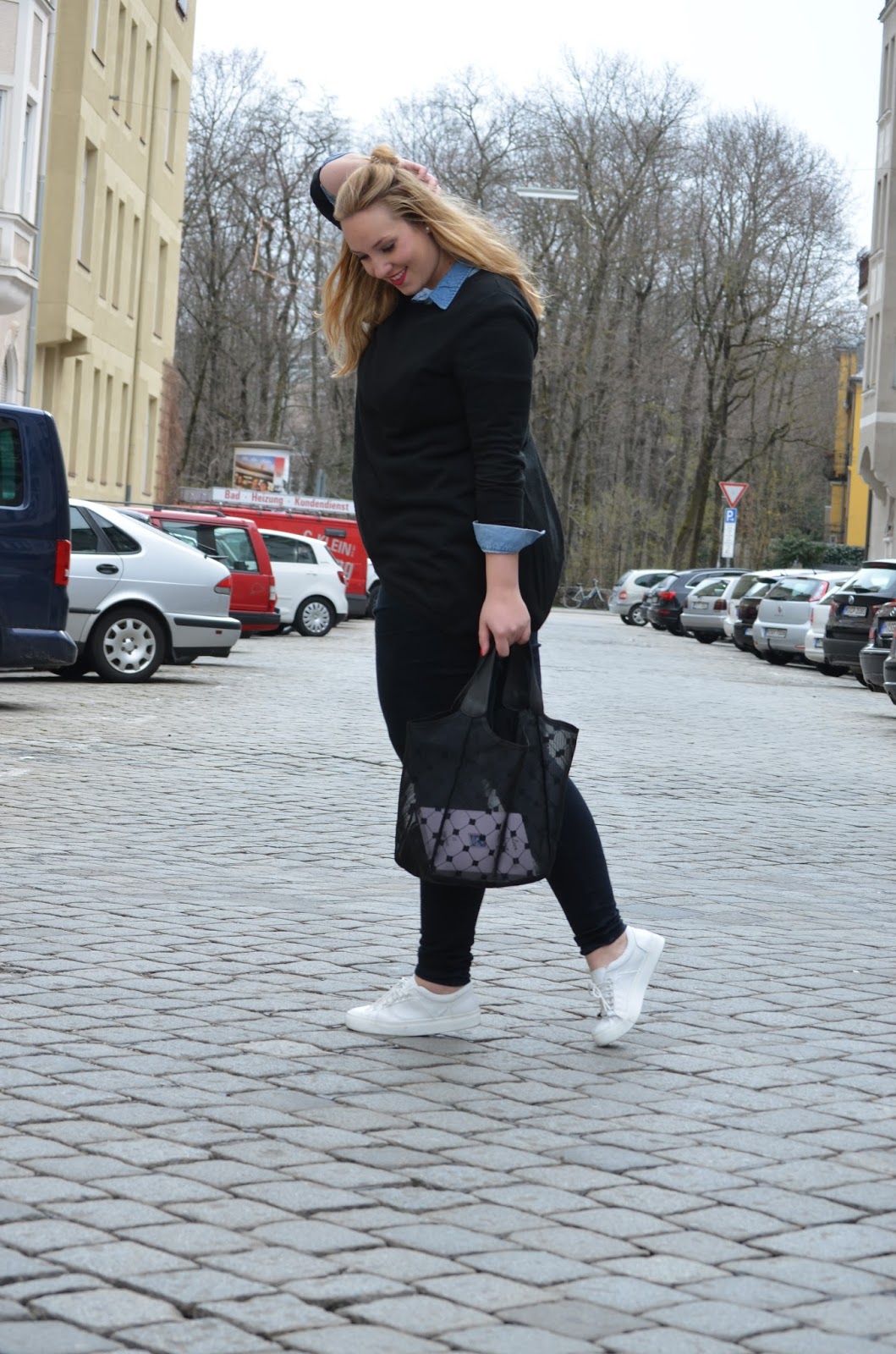 Das Outfit wurde dieses mal ganz Casual gehalten, genau so wie ich es am liebsten mag. Aufgrund meines Jobs sind High Heels nicht gerade praktisch in meinem Beruf und coole zerrissene Jeans leider auch nicht das beste Aushängeschild. Deshalb gibt es heute einen Look für jede Lebenssituation. Für den Alltag finde ich Sneaker oder Loafer dazu super cool, wenn ein Dinner ansteht, zieht man einfach den Pullover aus und ist gut gekleidet im Jeanshemd unterwegs. Gegen einen schnellen Schuhwechsel spricht natürlich auch nichts dagegen. Die trendige Blogger Frisur