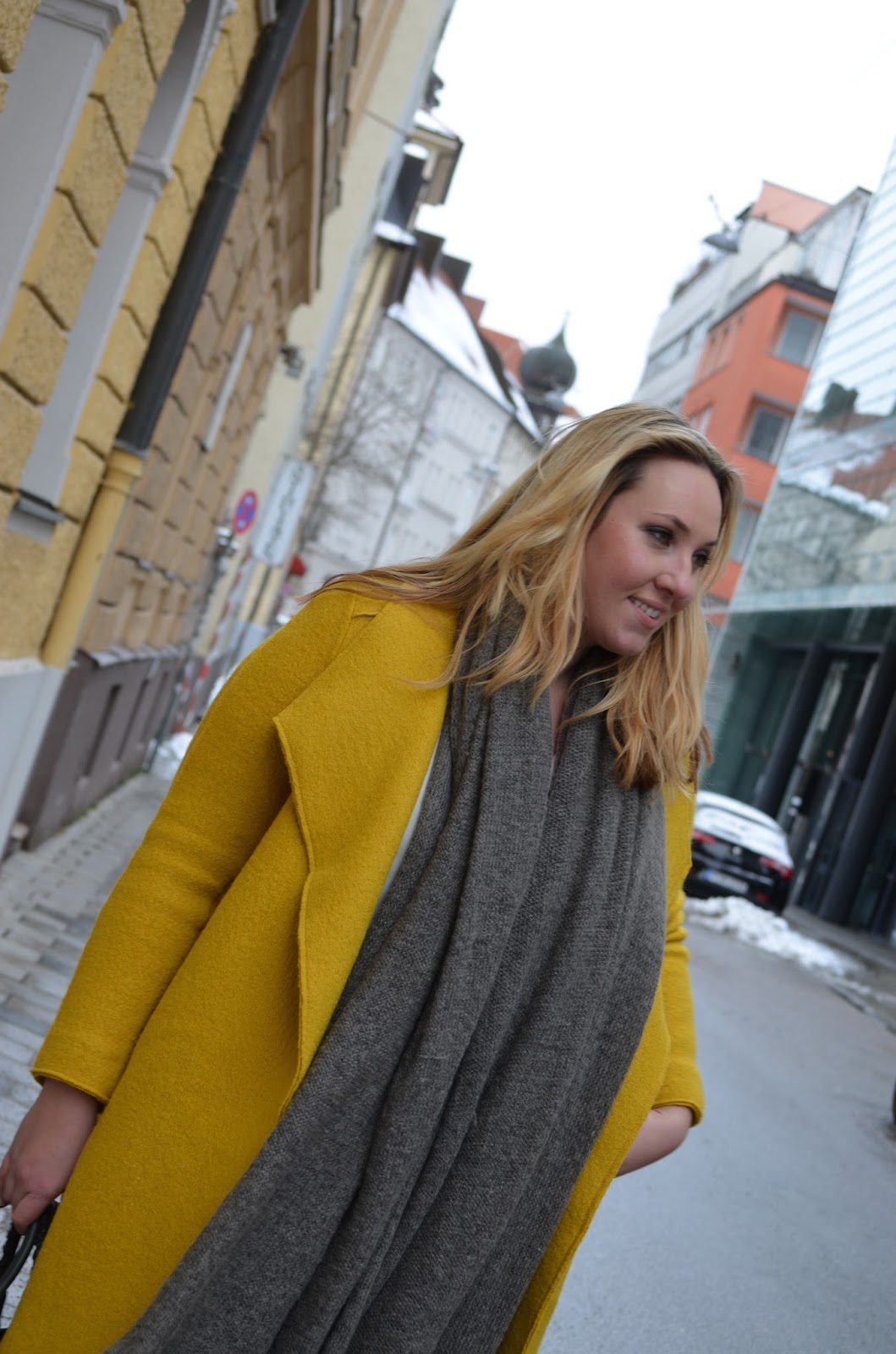 Ich zeige Euch heute den ersten Look mit dem neuen und wunderbaren Senfgelben Mantel von Zara.
